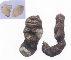 中间抱有松根的茯苓饮片称为