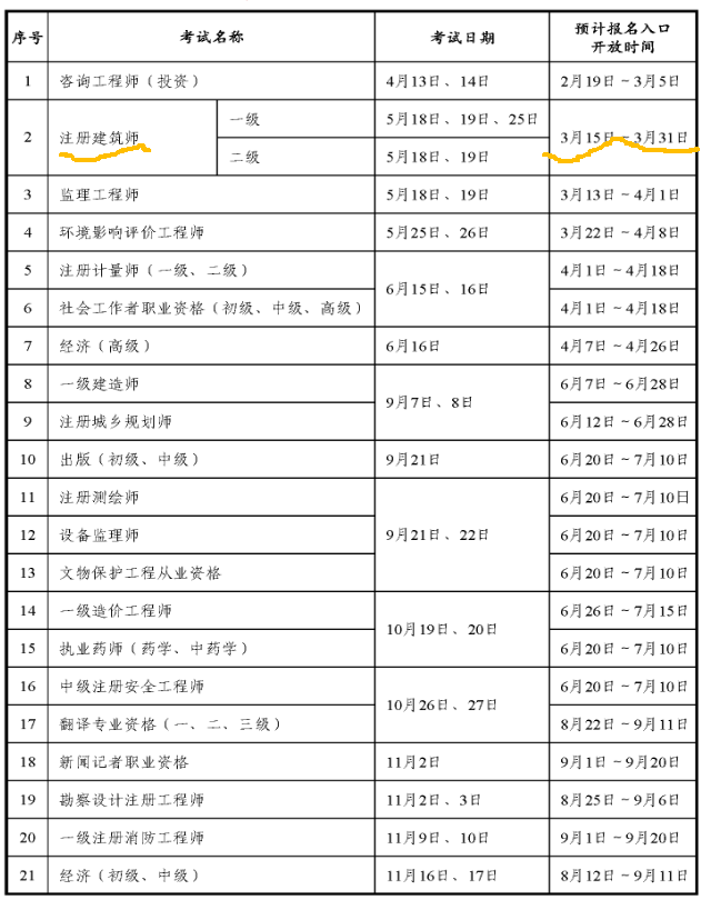 2024年二级注册建筑师报名时间为3月15日-3月31日。