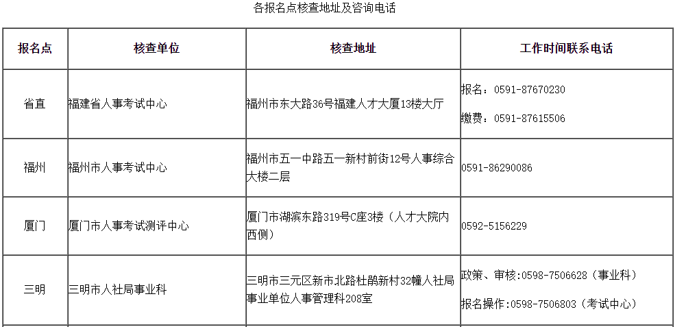 咨询电话:0591-87615506(仅限于缴费咨询,各报名点核查及咨询电话见附表1)。