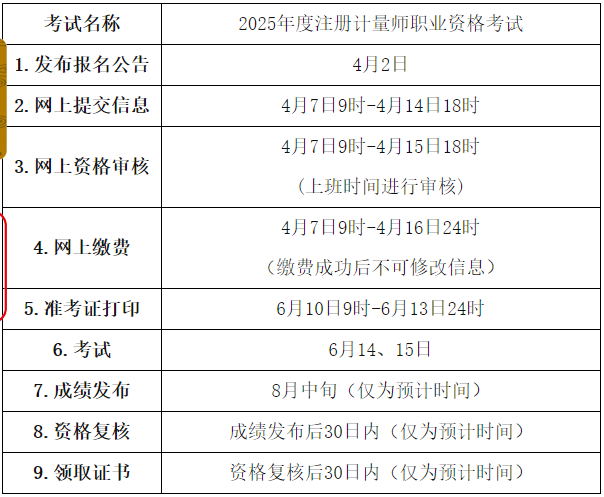 根据《人力资源社会保障部办公厅关于2025年度专业技术人员职业资格考试工作计划及有关事项的通知》(人社厅发〔2025〕1号),2025年度注册计量师职业资格考试于6月14日、15日举行。现将有关事项通知如下: