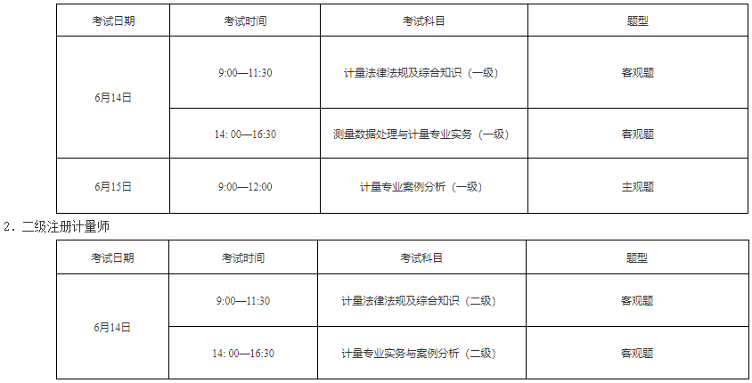 2.报考二级注册计量师职业资格考试的人员须取得中专及以上学历或学位,从事计量技术工作满1年。