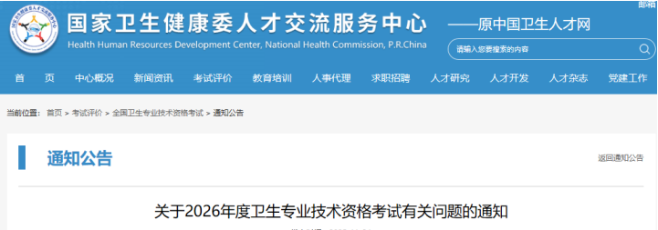 【卫生资格中级】关于2026年度卫生专业技术资格考试有关问题的通知