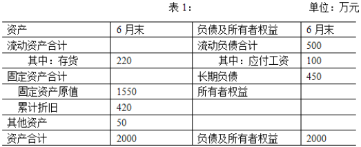 (二)某工业企业2016年5月末的固定资产净值为1115万元,6月末在岗职工600人,在本单位保留劳动关系但不在本单位从事劳动的人员10人,聘用兼职技术人员20人,借用外单位人员15人。该企业2016年6月资产负债简表如表1所示: