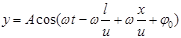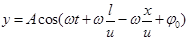 1. 如图所示,一平面简谐波沿x轴负方向传播,波速为u,已知距原点l处的P点的振动表达式为
