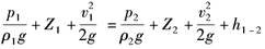 ,流体为不可压缩流体,两断面间的水头损失为h
