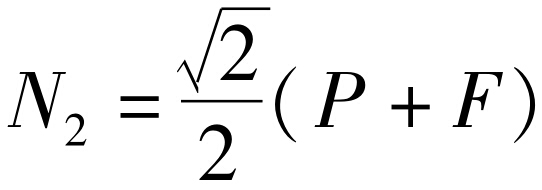 1. 均质圆柱体重P,直径为D,置于两光滑的斜面上。设有图示方向力F作用,当圆柱不移动时,接触面2处的约束力大小为( )。