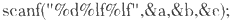能把值3输入给变量a、4输入给变量b、5输入给变量C的语句是( )。