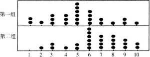 对某个产品按照1~10打分评价,1表示非常不满意,10表示非常满意。研究者分别就两组人员进行了调查,调查数据见下图。