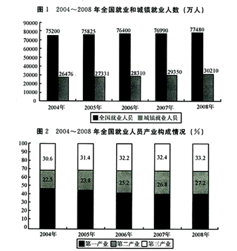 1.2004~2008年全国三大产业就业人员的产业构成中,比重变化最大的是(  )。