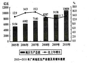 2010年,广州市实现地区生产总值(GDP10604.48亿元,按可比价格计算,比上年(下同)增长13.0%。其中,第一产业增加值189.05亿元,增长3.2%;第二产业增加值3950.64亿元,增长13.0%;第三产业增加值6464.79亿元,增长13.2%。第一、二、三次产业增加值的比例为1.8:37.2:61.0。三次产业对经济增长的贡献率分别为0.4%38.4%61.2%