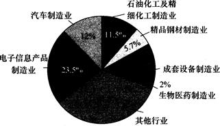 2 2010年上海市六个重点发展工业行业占全市规模以上工业总产值的比重