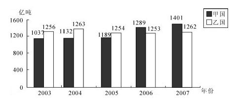 1.2004~2007年,甲国的年碳排放量与上年相比增长幅度最大的年份是( )。