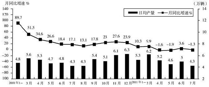 1.2011年7月轿车产量占汽车产量的比重与上年同期相比( )。