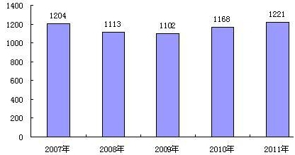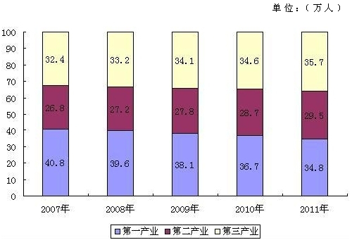 图1 2007~2011年全国就业人员产业构成情况 单位:(万人)