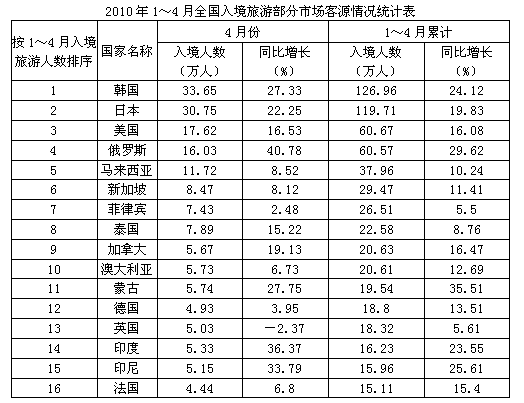 1.若按2010年1~3月入境旅游人数排序,以下各项错误的是( )。