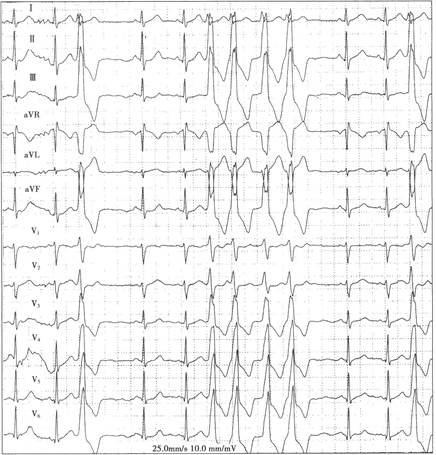 1.图中短阵宽QRS波心动过速应诊断为下列哪种疾病?( )