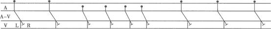 患者男性,80岁,高血压病史20年。查心电图并绘制梯形图,梯形图如图所示,窦性心率为60次/分。