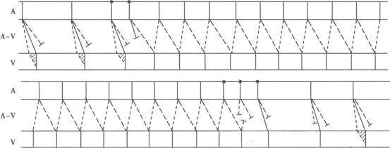 患者男性,18岁,发作性心悸2年,突发突止。记录到心慌发作时心电图并绘制梯形图,梯形图如图所示,心动过速时心率为180次/分。
