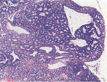 患者男,55岁。体检B超发现胆囊息肉。手术中见胆囊底部息肉样肿物,质软,切面灰红色。显微镜下观察如图所示。