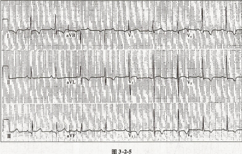 患者女性,60岁,高血压病史15年。近来稍活动就发作胸痛。心电图见图3-2-5。