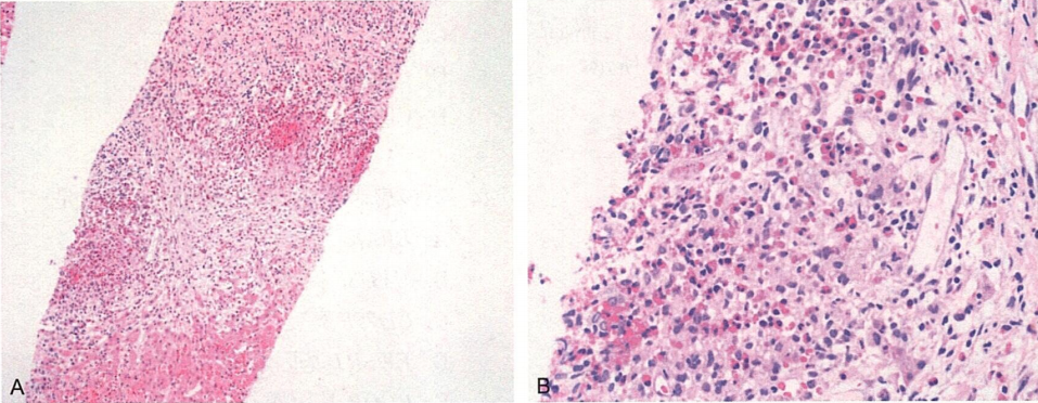 患者男,23岁。发现肝占位病变,进行肝穿刺活检,病变形态如图所示。