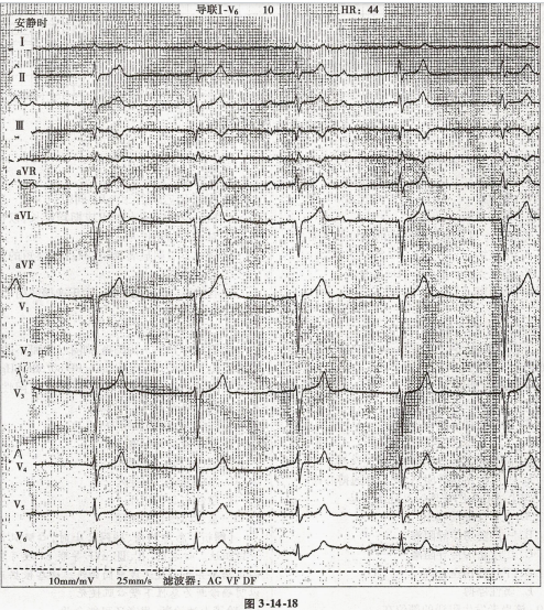患者男性,64岁,头晕、胸闷2天。心电图如图3-14-18所示。