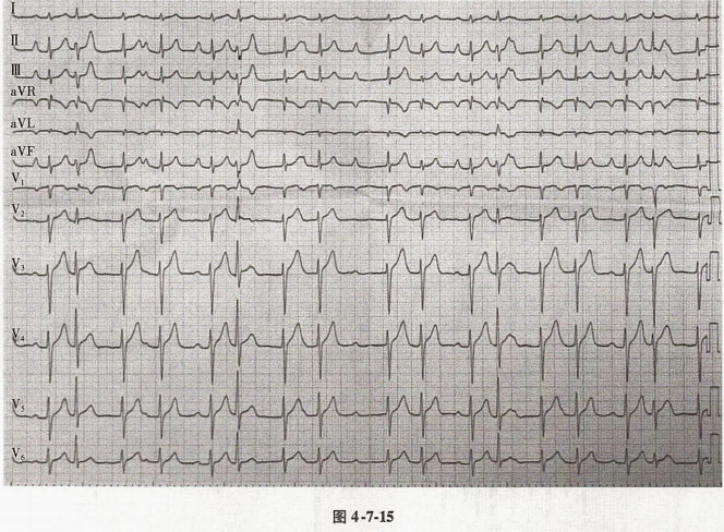 患者男,56岁。间断心慌、不适6年。查体:心率86次/min,律不齐。超声心动图正常,常规心电图如图4-7-15所示。