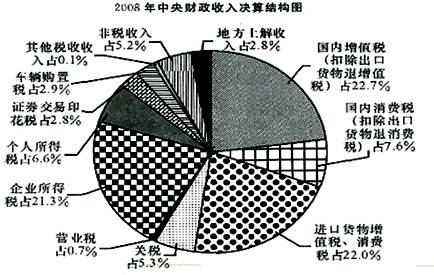 1.2008年国内增值税、消费税的总收入为16066.03亿元,出口货物退增值税、消费税5865.93亿元。那么,2008年中央财政总收入约为( )亿元。