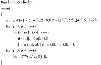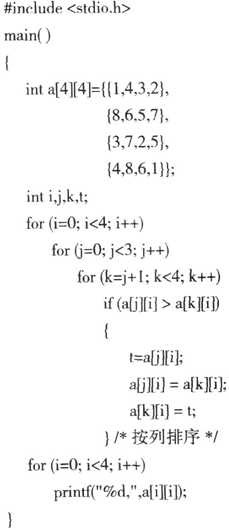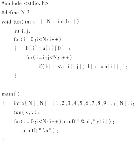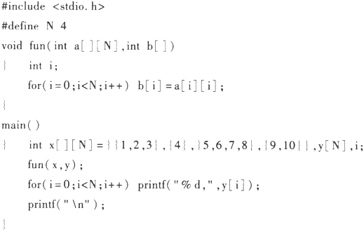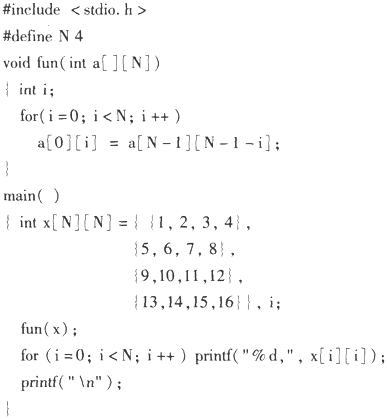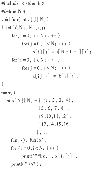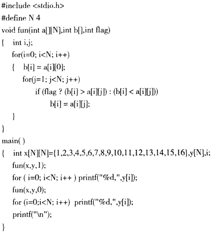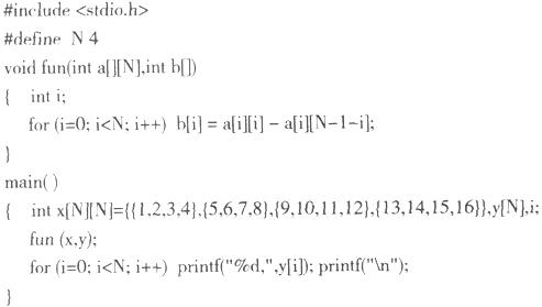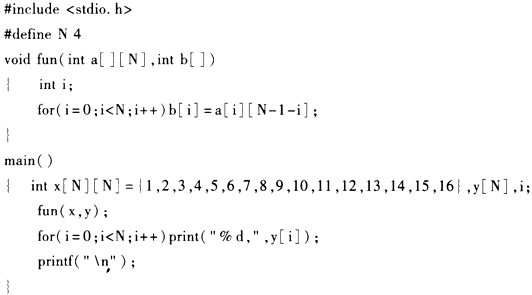 { int x[N][N]={1,2,3,4,5,6,7,8,9,10,11,12,13,14,15,16},y[N],i;