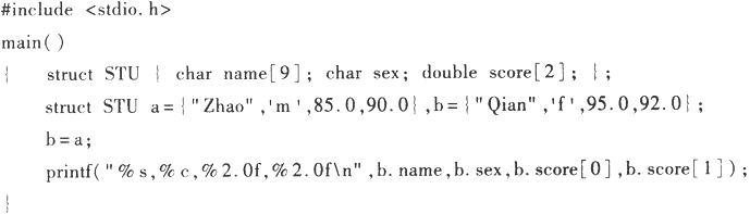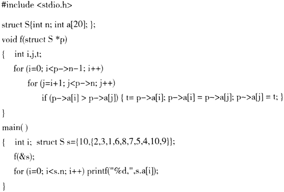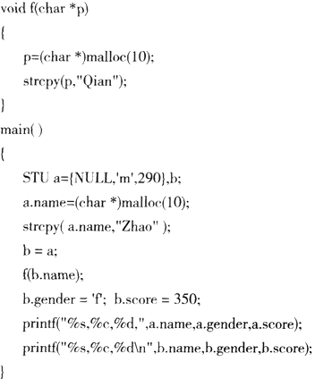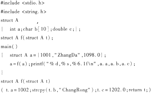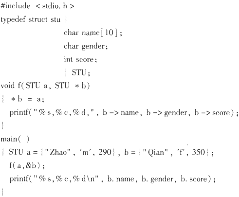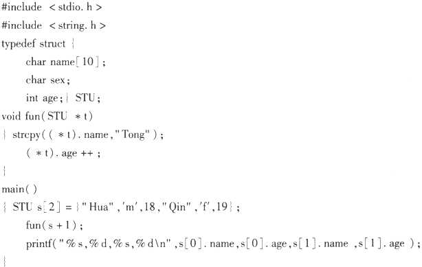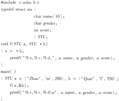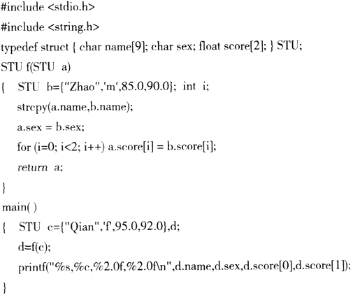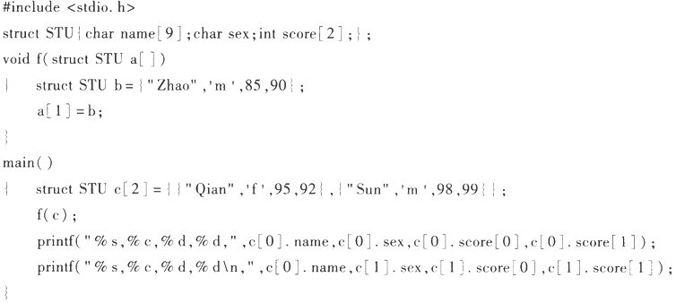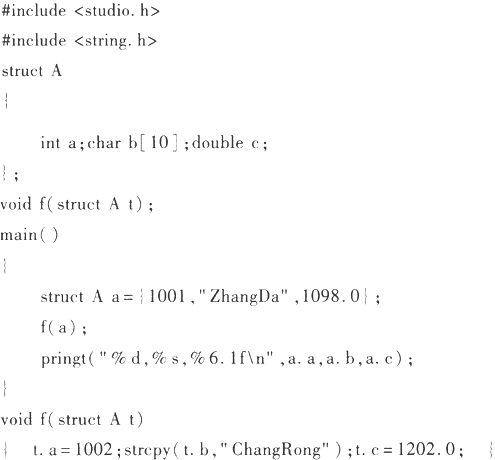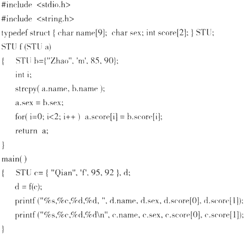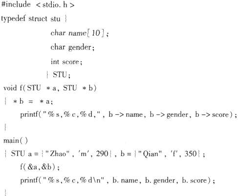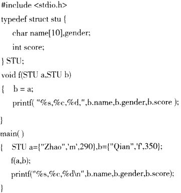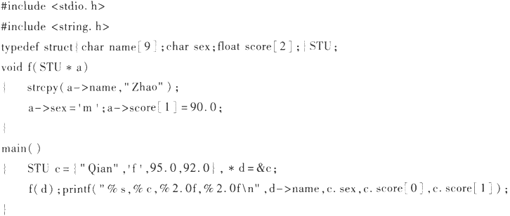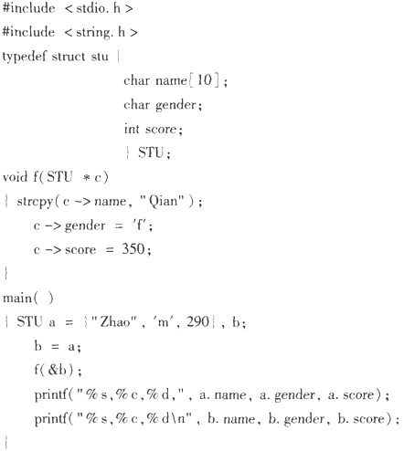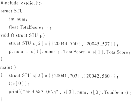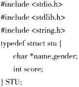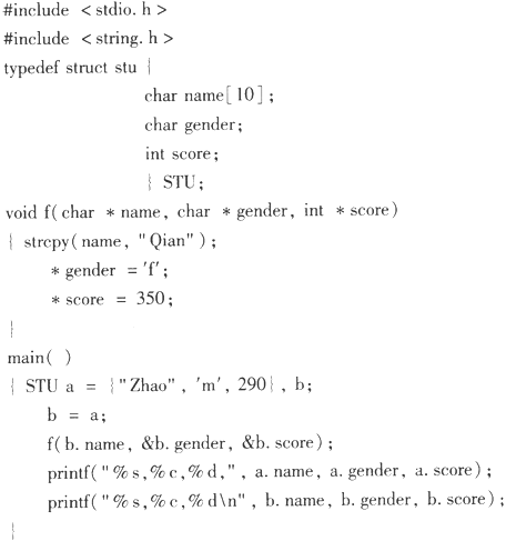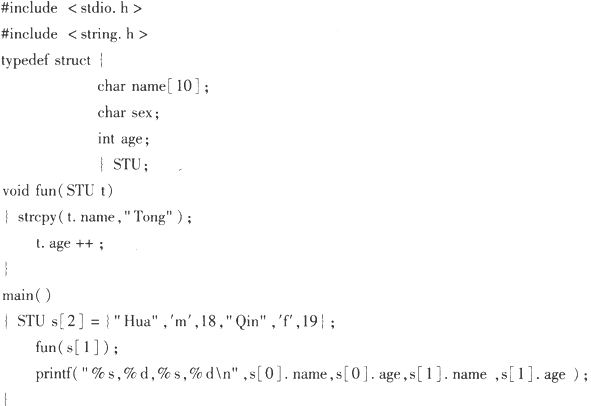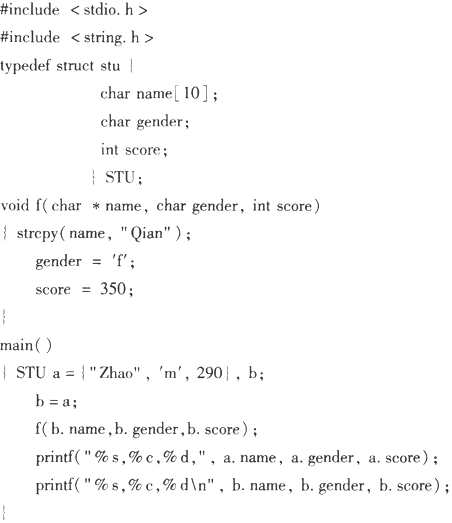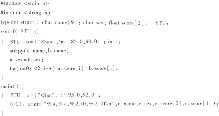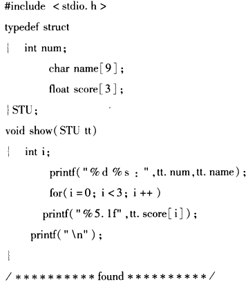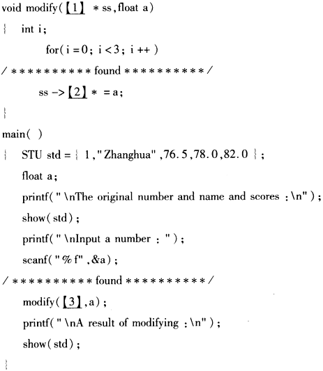 给定程序通过定义并赋初值的方式,利用结构体变量存储了一名学生的学号、姓名和3门课的成绩。函数fun的功能是将该学生的各科成绩都乘以一个系数a。