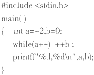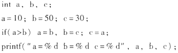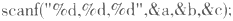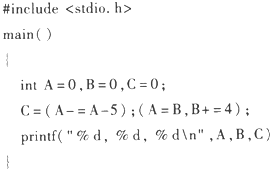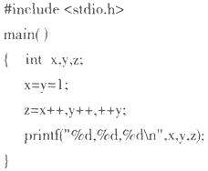 j=a++;k=b;printf("%d,%d,%d ",i,j,k);
