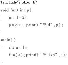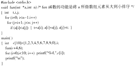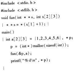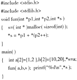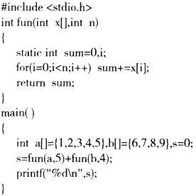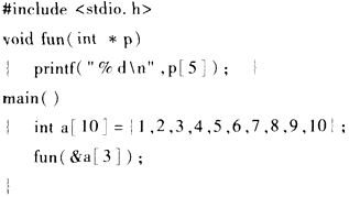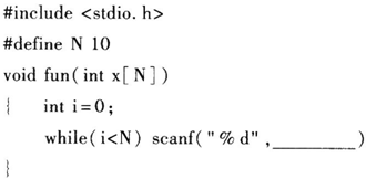 若主函数中有定义语句:int a[10],b[10],c;,在主函数前定义的fun函数首部为:void fun(int x[ ]),则以下选项中错误的调用语句是( )。