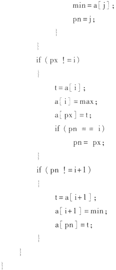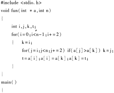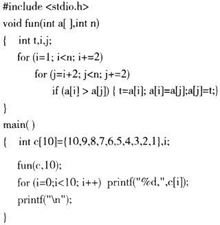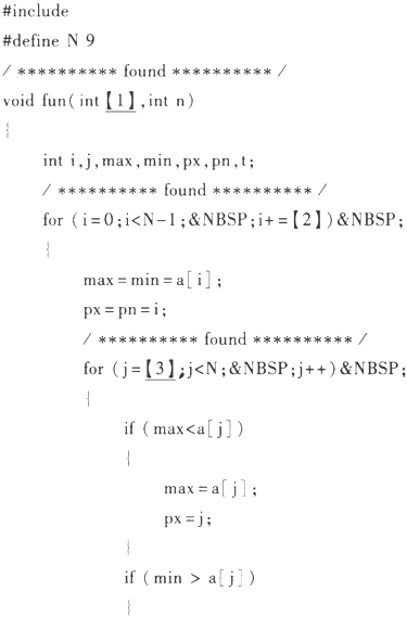 函数fun()的功能是:把形参a所指数组中的最大值放在a[0]中,接着求出a所指数组中的最小值放在 a[1]中;再把a所指数组元素中的次大值放在a[2]中,把a数组元素中的次小值放在a[3]中;其余依此类推。例如:若a所指数组中的数据最初排列为:1,4,2,3,9,6,5,8,7,则按规则移动后,数据排列为:9,1,8,2,7,3,6,4,5。形参n中存放a所指数组中数据的个数。
