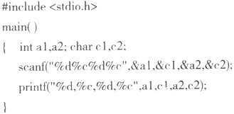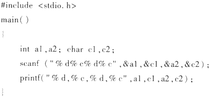 设有:char s[5],c;,则调用函数scanf能正确给s和c读入数据的是( )。