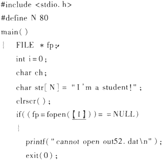 请补充main函数,该函数的功能是:先以只写方式打开文件“out52.dat”,再把字符串str中的字符保存到这个磁盘文件中。