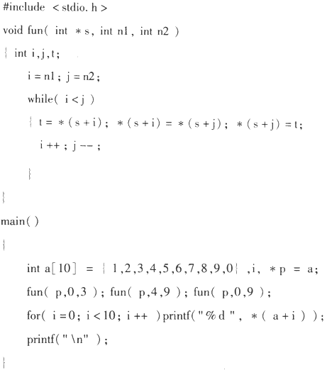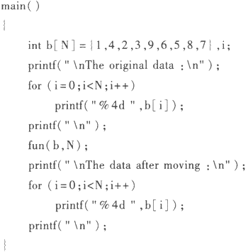 请编写函数fun(),该函数的功能是:移动一维数组中的内容,若数组中有n个整数,要求把下标从p~n-1(p<n-1)的数组元素平移到数组的前面。