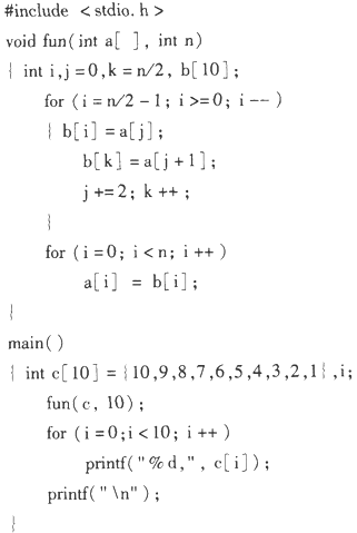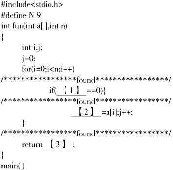 下列给定程序中,函数fun的功能是:把形参a所指数组中的偶数按原顺序依次存放到a[0]、a[1]、a[2]…中,把奇数从数组中删除,偶数的个数通过函数值返回。