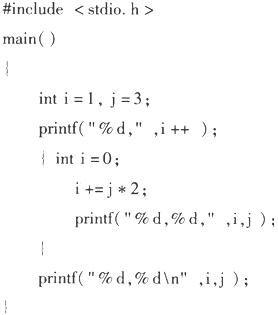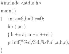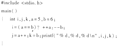 若有定义:int a=1,b=2,c=3;,则执行表达式(a=b+c)‖(++b)后a,b,c的值依次为( )。