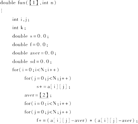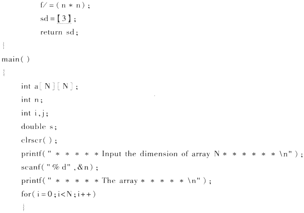 请补充fun函数,该函数的功能是:计算N×N维矩阵元素的方差,结果由函数返回。维数在主函数中输入。例如: