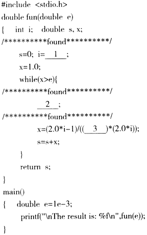 请在程序的下画线处填入正确的内容并把下画线删除,使程序得出正确的结果。注意:部分源程序给出如下。