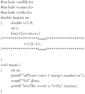 例如,若m中的值为:5,则应输出:1.463611。请改正程序中的错误,使它能得到正确结果。