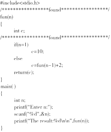 例如,当给n输入5时,函数值为18;当给n输入3时,函数值为14。请改正程序中的错误,使它能得出正确的结果。