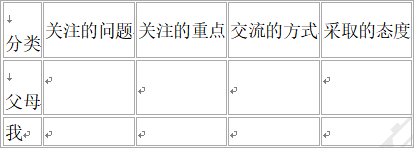 审视表格中填写的内容。反思自己可以从哪些方面改善或增进亲子关系。并与同学交流分享。
