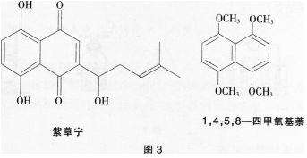 紫草宁可以用作创伤.烧伤等的治疗药物,它可以由1,4,5,8一四甲氧基萘经多步反应合成,两者分子的结构简式分别如图3所示。下列说法不正确的是()。
