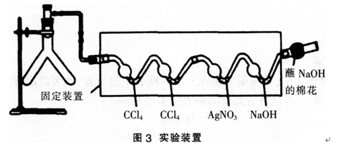 如图3,用带Y型管的橡胶塞事先塞紧双通管的下端,Y型管与小试管用橡皮管(带止水夹)固定,一支小试管中装入pH试纸(用湿润的pH试纸贴在试管壁上).AgNO3溶液,另一支小试管中装入滴有KSCN的新制FeS04溶液(用少许植物油液封),事先在通风橱下用向上排气法在双通管中收集满氯气(通过观察气体颜色确定氯气是否集满),取下橡胶塞,立即用带有注射器(注射器有水)和胶头滴管(滴管里装有适量CCl4)的橡胶塞塞紧双通管的上端