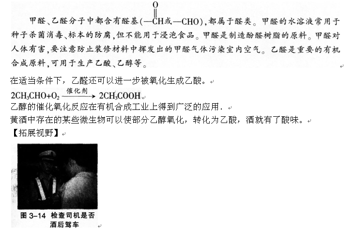 材料二人教版高中化学教科书《化学2》生活中常见的有机物的部分内容: