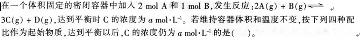 在某恒温恒容的密闭容器内发生反应:开始充入2molA和2molB,并达到平衡状态,下列说法正确的是()。