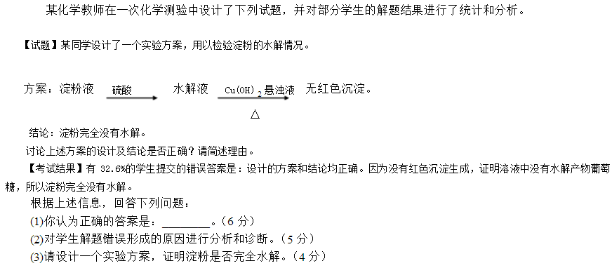 某化学教师在一次化学测验中设计了下面试题,并对学生的解题结果进行了统计和分析。