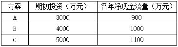 - 某施工项目有四个可选择的技术方案,其效果相同。方案一需要投资240万元,年生产成本为64万元;方案二需要投资320万元,年生产成本为52万元;方案三需要投资360万元,年生产成本为45万元;方案四需要投资400万元,年生产成本为36万元。不考虑税收因素,当基准投资收益率为12%时,运用折算费用法选择的方案应是( )。