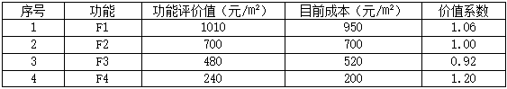 某工程有四个功能、对共进行价值工程分析,相关数据下表、下列分析结论中,正确的有()。